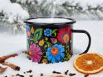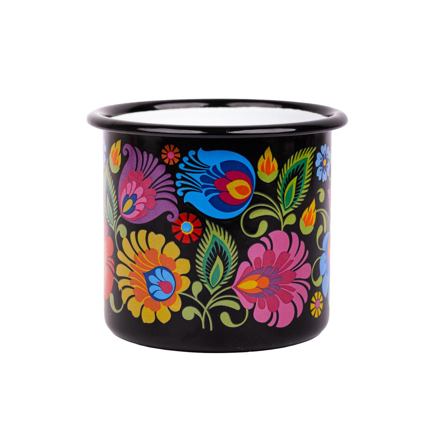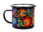 Kubek emaliowany Janek 500ml - łowicki czarny