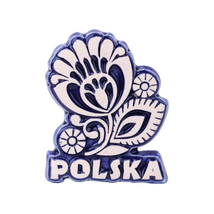 Magnes ceramiczny - Kwiatek łowicki granatowy: