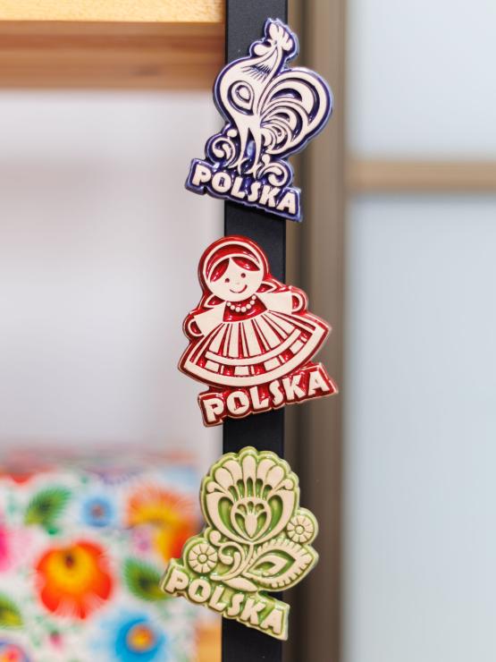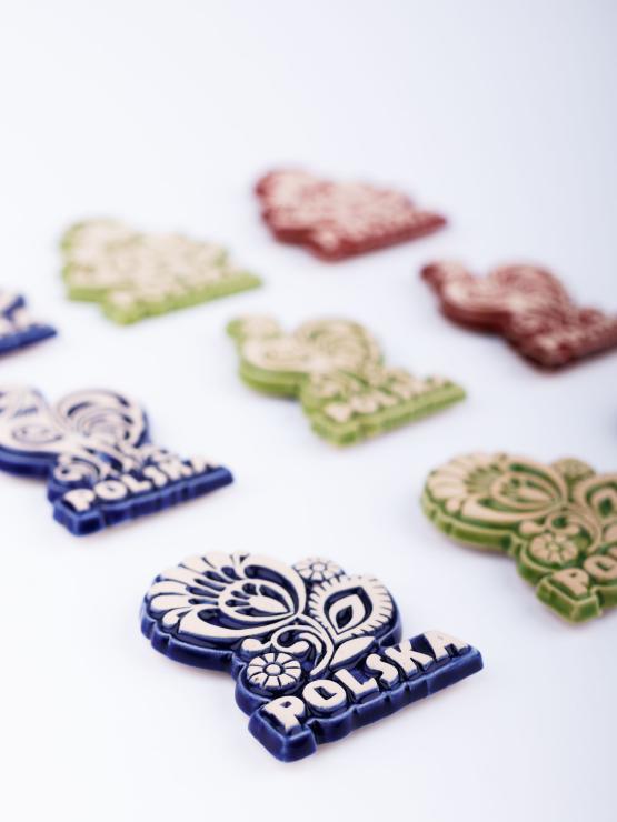 Wykonany ręcznie magnes ceramiczny to stylowy dodatek do Twojego domu, jak i również doskonała pamiątka z Polski. Przyczepisz go na lodówkę, pralkę czy zmywarkę - wszędzie będzie się dobrze prezentował :)
