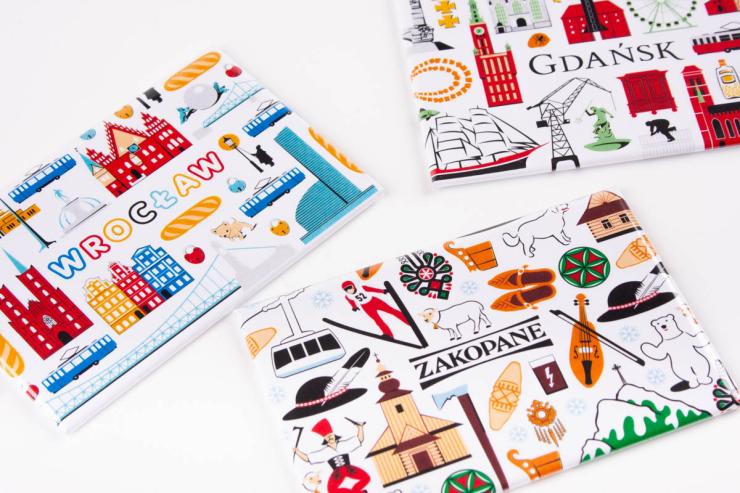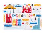 - biały z nadrukowanymi symbolami charakterystycznymi dla miasta Wrocław,