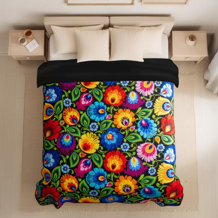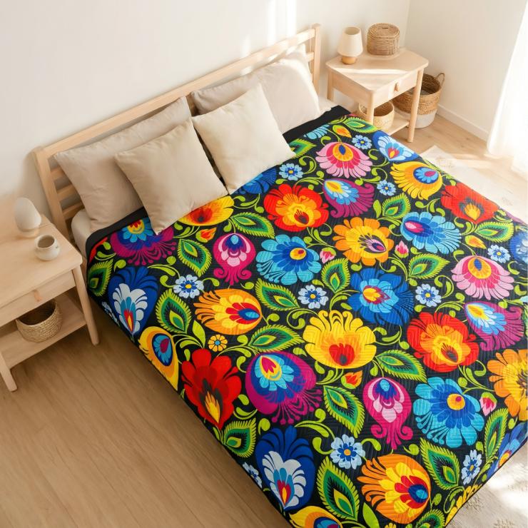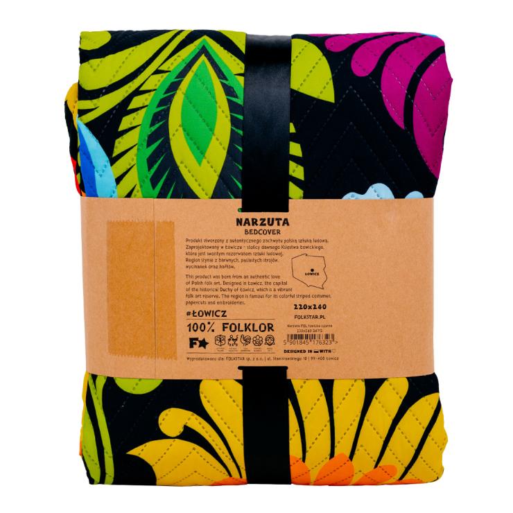 Narzuta na łóżko 220x240 cm - łowicka czarna