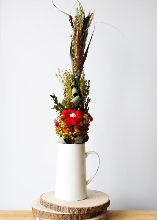 Wykonane z kwiatów z bibuły, szuszonych traw, trzcin i zboża