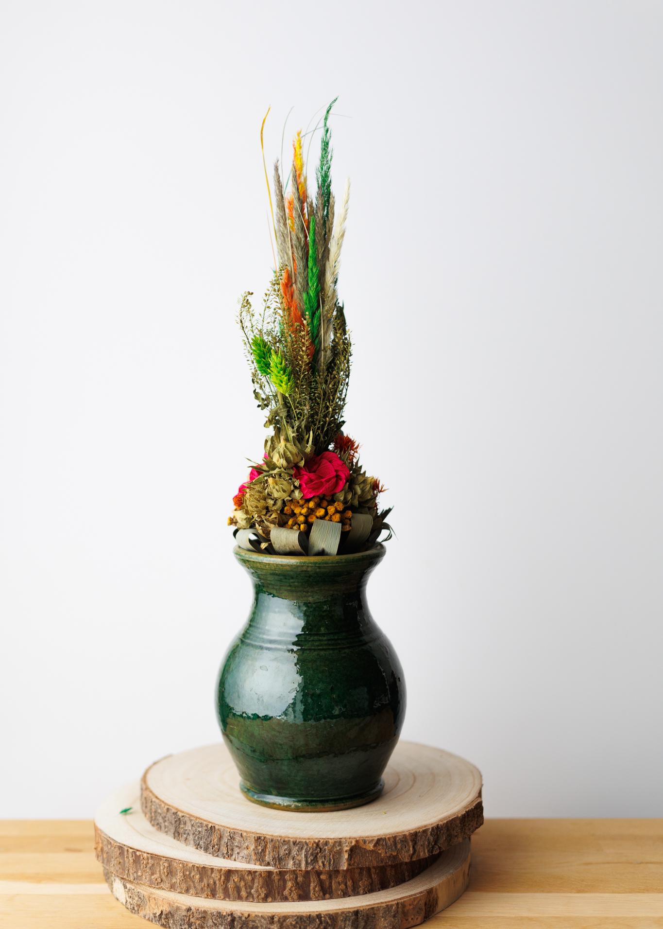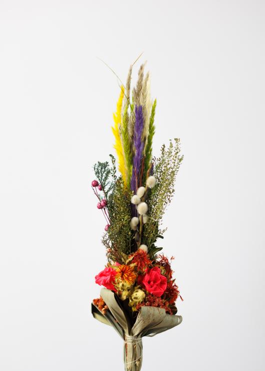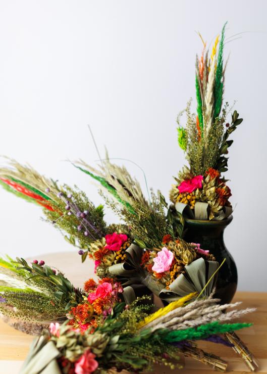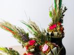 Wykonane z kwiatów z bibuły, szuszonych traw, trzcin i zboża