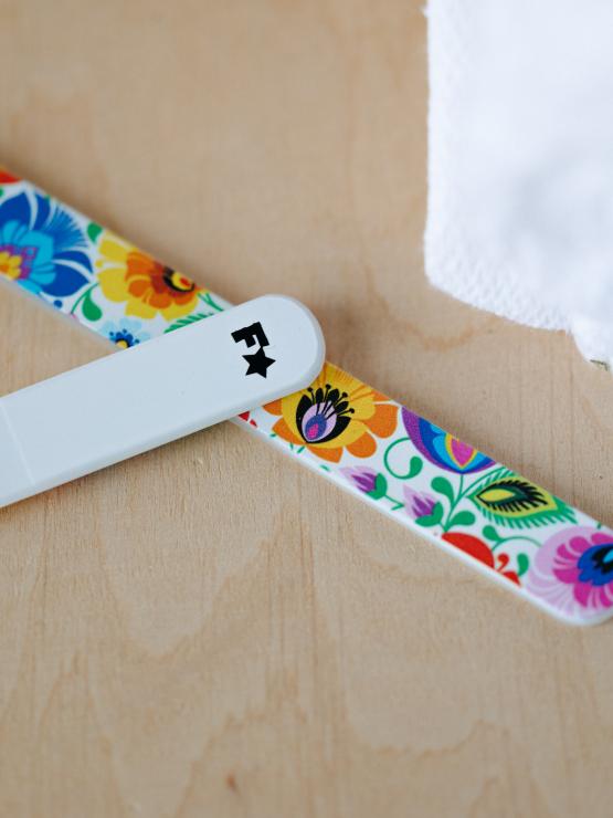 Pilniczek szklany - łowicki biały to eleganckie i niezwykle praktyczne narzędzie, które pozwala uzyskać perfekcyjny kształt paznokci w prosty i precyzyjny sposób. Stworzony z myślą o komforcie użytkowania, doskonale sprawdza się zarówno w codziennej pielęgnacji, jak i w profesjonalnym manicure.