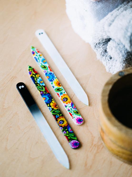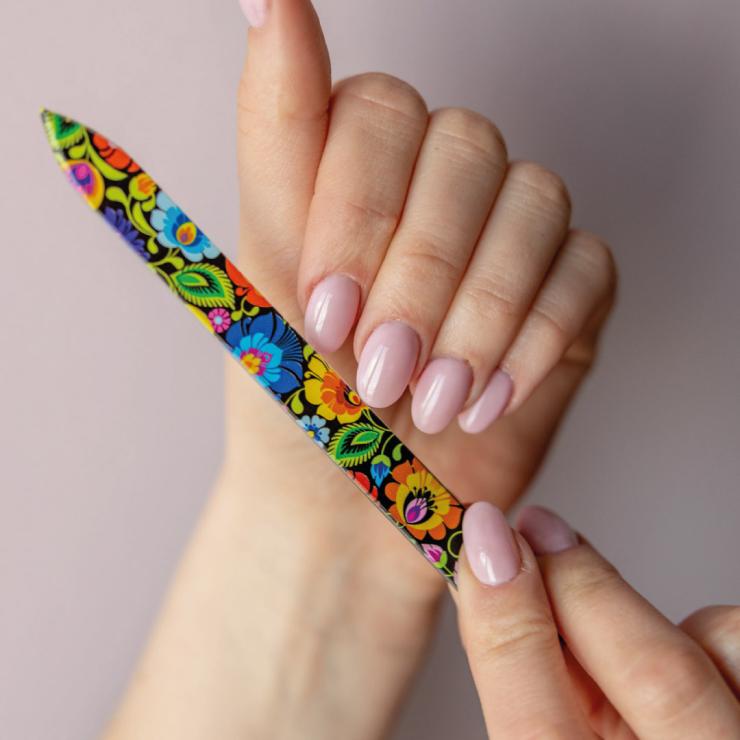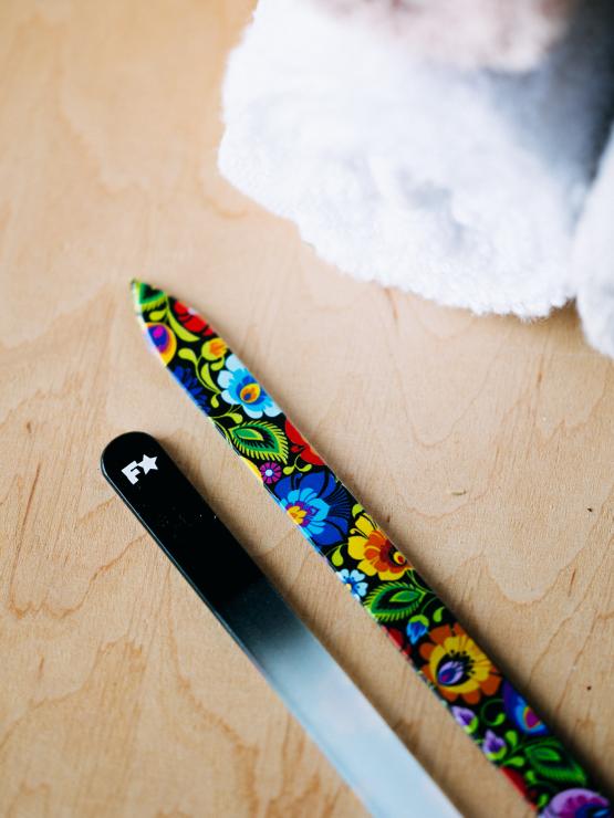 Pilniczek szklany - łowicki czarny to eleganckie i niezwykle praktyczne narzędzie, które pozwala uzyskać perfekcyjny kształt paznokci w prosty i precyzyjny sposób. Stworzony z myślą o komforcie użytkowania, doskonale sprawdza się zarówno w codziennej pielęgnacji, jak i w profesjonalnym manicure.
