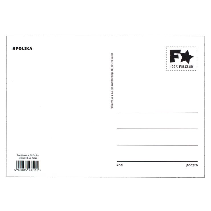 Pocztówka ozdobiona symbolami Polski - wyślij ją do swojego przyjaciela i spraw, aby na jego twarzy pojawił się uśmiech :)