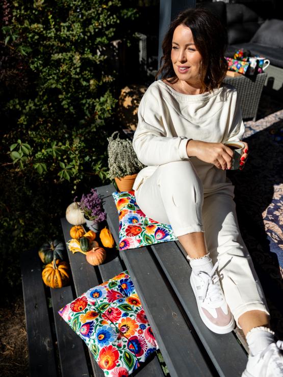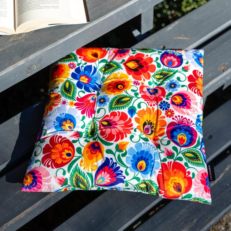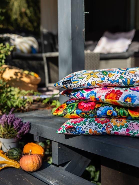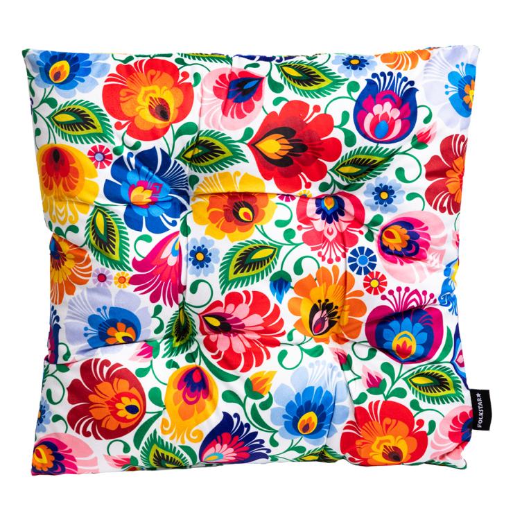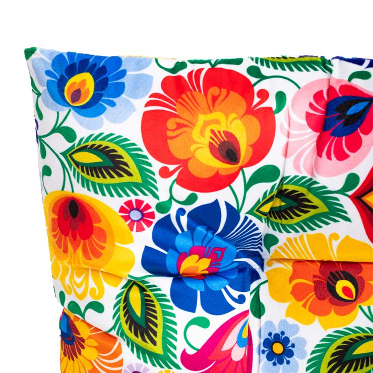 Poduszka na krzesło to nie tylko praktyczny dodatek, ale też wyjątkowa dekoracja wnętrza. Kolorowe kwiaty wniosą do Twojego domu odrobinę radości i energii, a wzór łowicki ożywi każde krzesło.