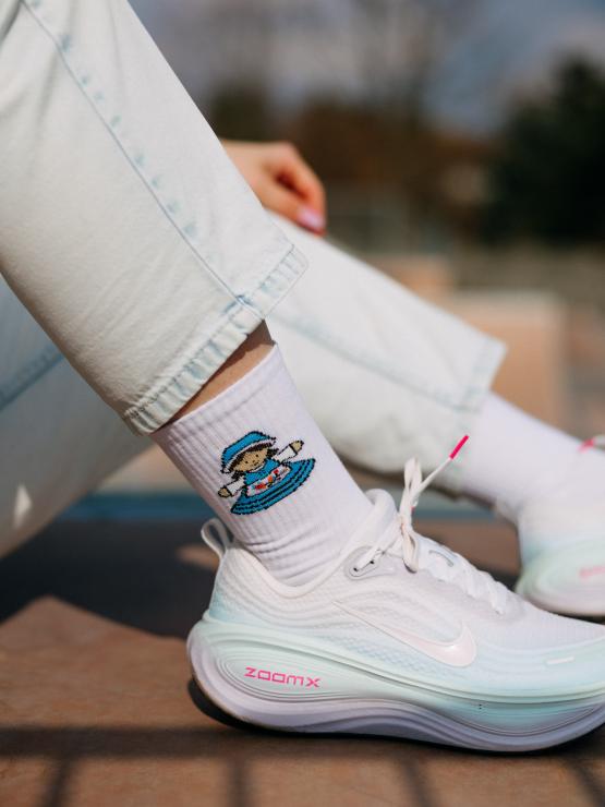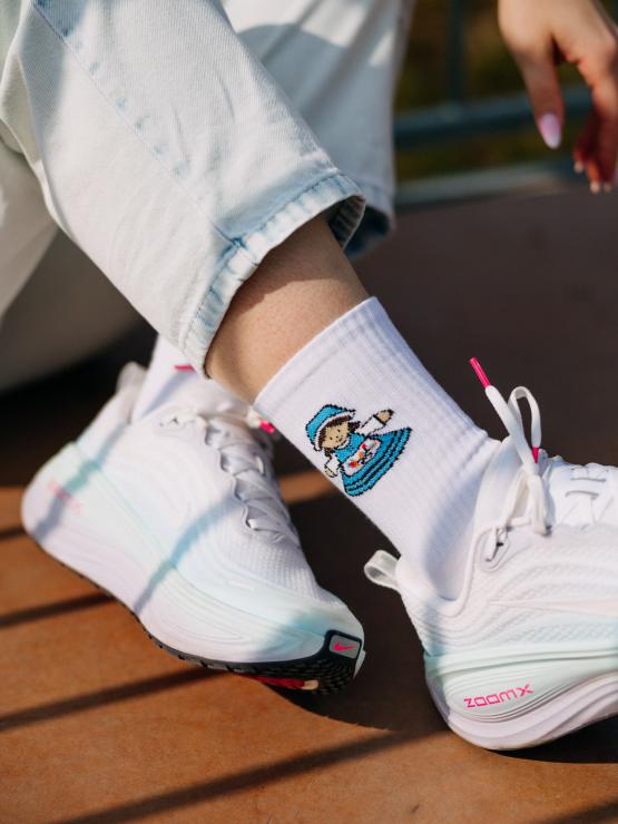 Skarpetki długie białe z folkową ikonką Kaszubki na górze to idealny dodatek, który przełamie każdą stylizację - od jeansów, przez sukienki, po modne snickersy. Delikatny wzór dodaje im unikatowego charakteru, dzięki czemu sprytnie łączą modę z tradycją.