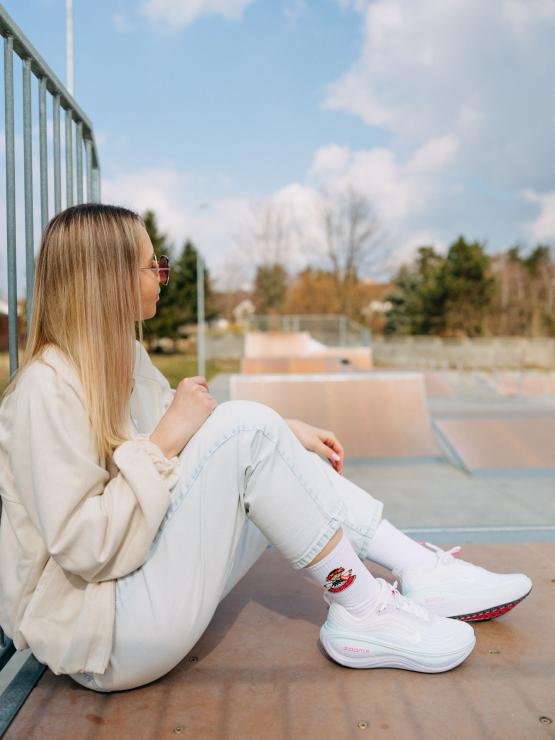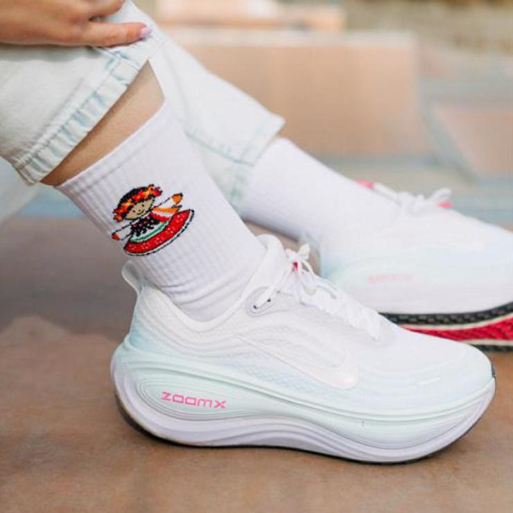Skarpetki długie białe z folkową ikonką Krakowianki na górze to idealny dodatek, który przełamie każdą stylizację - od jeansów, przez sukienki, po modne snickersy. Delikatny wzór dodaje im unikatowego charakteru, dzięki czemu sprytnie łączą modę z tradycją.
