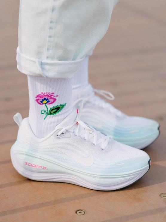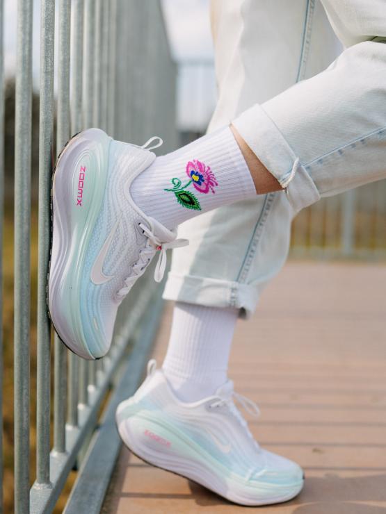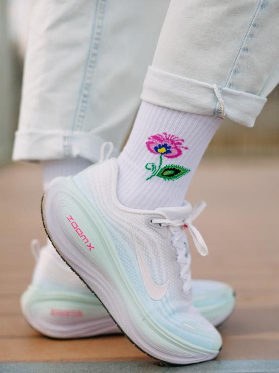 Skarpetki długie białe z folkową ikonką Kwiatka łowickiego na górze to idealny dodatek, który przełamie każdą stylizację - od jeansów, przez sukienki, po modne snickersy. Delikatny wzór dodaje im unikatowego charakteru, dzięki czemu sprytnie łączą modę z tradycją.