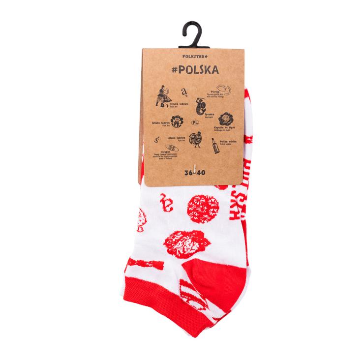 Skarpetki krótkie z motywem Polska Symbole to idealne połączenie luzu, wygody i miłości do ojczyzny.