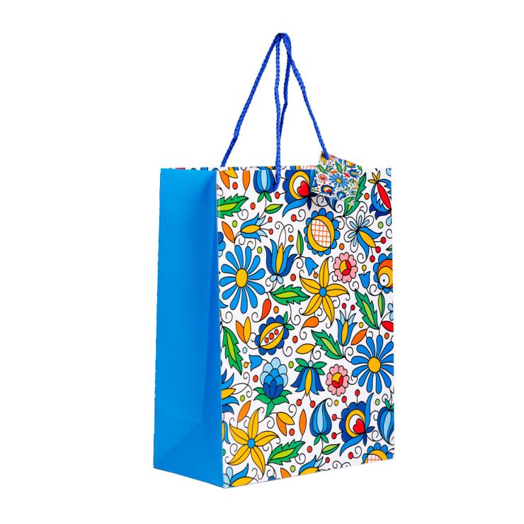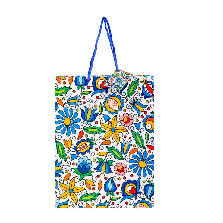 Torebka ozdobna do pakowania prezentów - wzór kwiatów z tradycyjnego haftu kaszubskiego:
