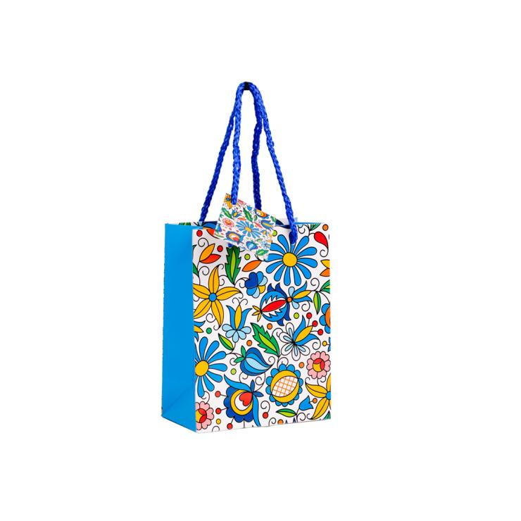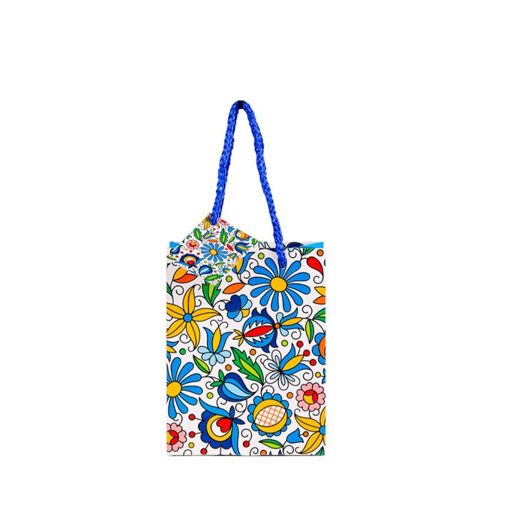 Torebka ozdobna do pakowania prezentów - wzór kwiatów z tradycyjnego haftu kaszubskiego