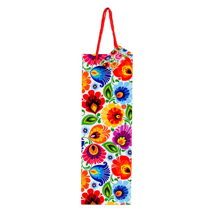 Folk torebka ozdobna do pakowania prezentów – wzór kwiatów z tradycyjnej wycinanki łowickiej: