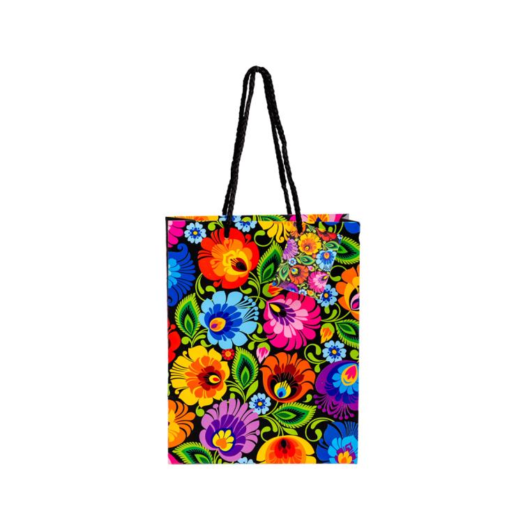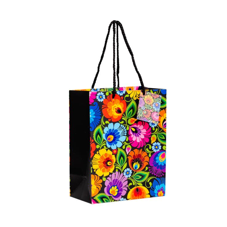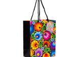 Torebka ozdobna do pakowania prezentów – wzór kwiatów z tradycyjnej wycinanki łowickiej: