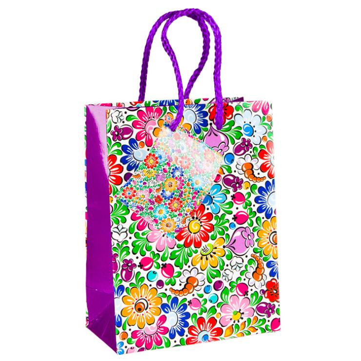 Torebka ozdobna do pakowania prezentów – wzór kwiatów z tradycyjnej porcelany opolskiej: