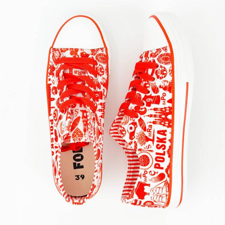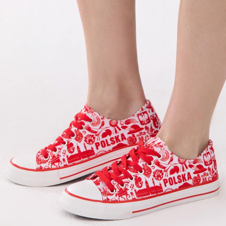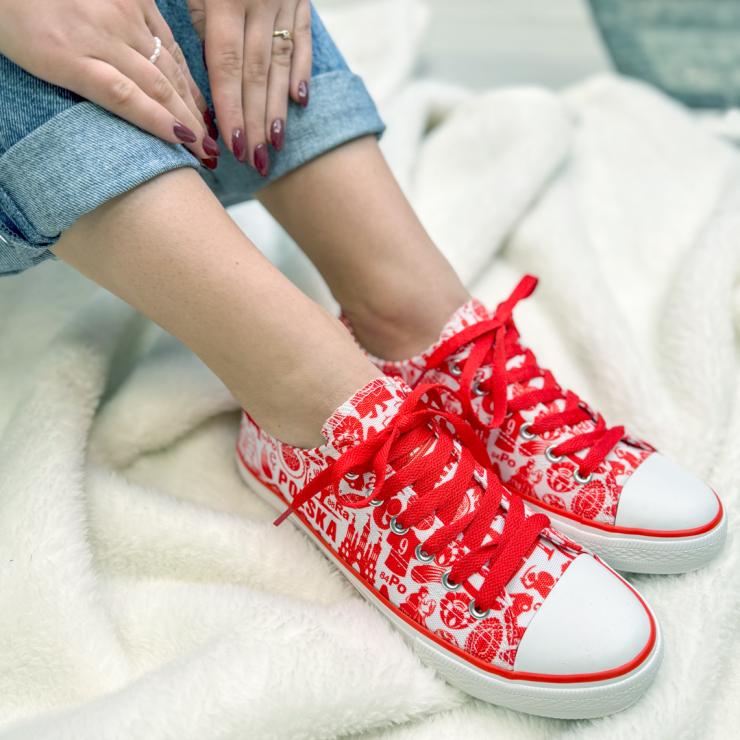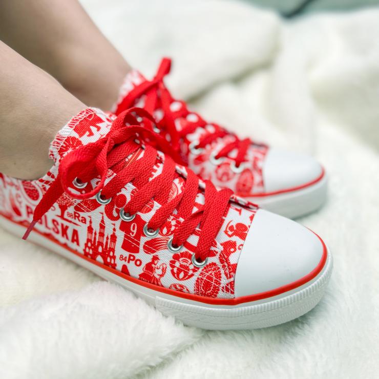 Trampki krótkie - POLSKA symbole są idealne na wycieczkę, spacer, do chodzenia na co dzień i na pokaz! Ponadczasowe trampki wzbogacone symbolami charakterystycznymi dla Polski dodadzą charakteru każdej stylizacji oraz nadadzą jej oryginalności.
