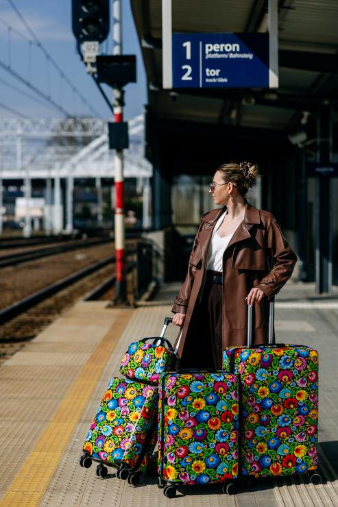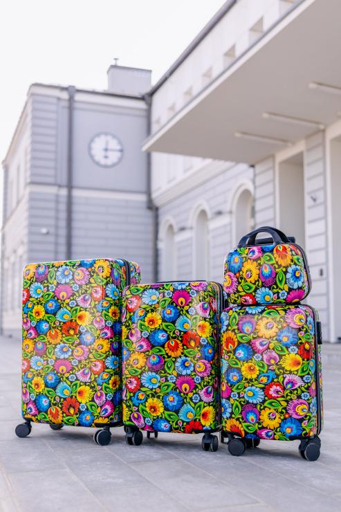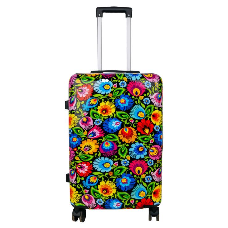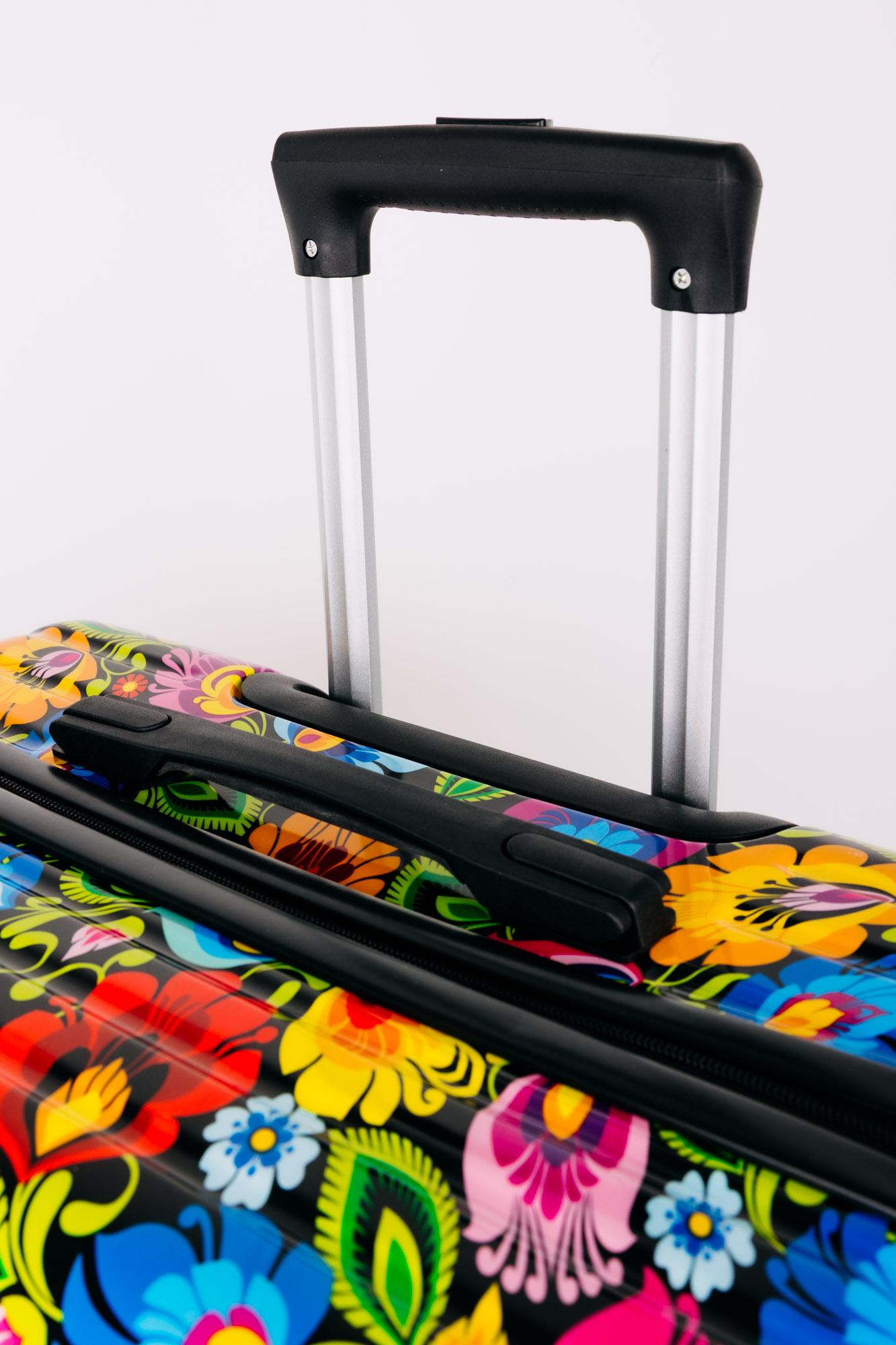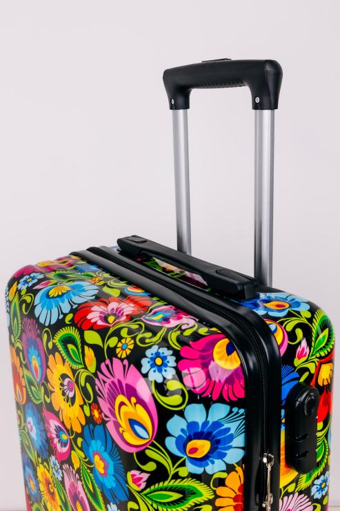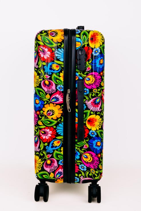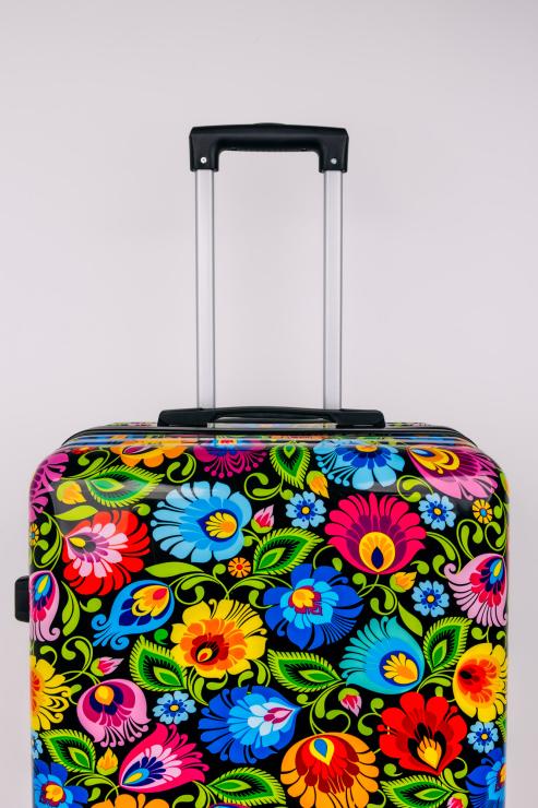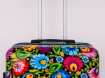 Poznaj idealnego towarzysza każdej podróży - walizka średnia ozdobiona wzorem łowickim. To doskonały wybór zarówno na krótkie wypady, jak i dłuższe wyjazdy.