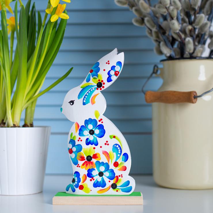 Drewniany zając sprawdzi się jako ozdoba podczas Świąt Wielkanocnych. Taki drobny szczegół postawiony na stole na białym obrusie, bądź na komodzie sprawi, że każdy poczuje klimat świąt. Przykuje uwagę nawet najmłodszych, że aż oderwą wzrok od telefonów i tabletów :)