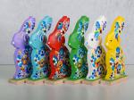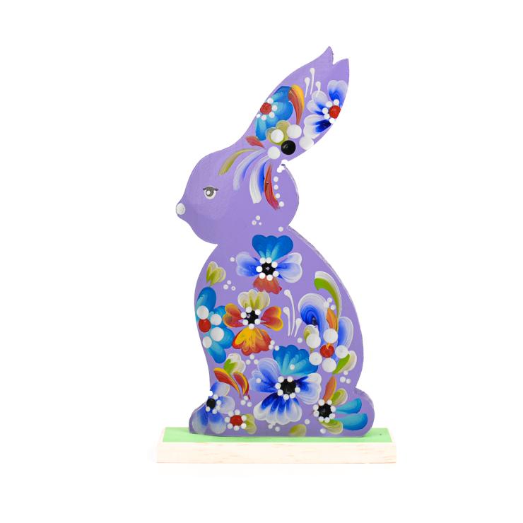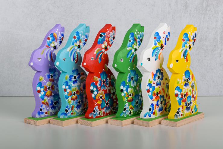 Drewniany zając w kwiatki sprawdzi się jako ozdoba podczas Świąt Wielkanocnych. Taka malowana ozdoba postawiona na stole, bądź na komodzie sprawi, że każdy poczuje klimat świąt i wprowadzi pogodny nastrój.