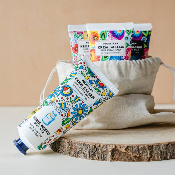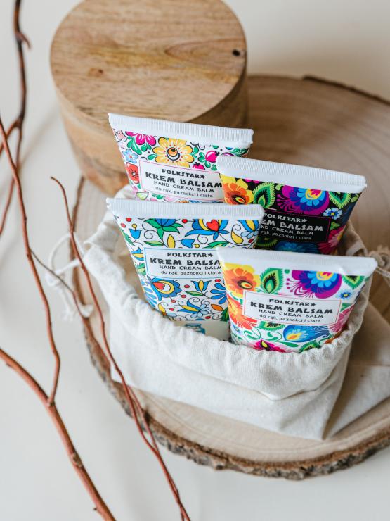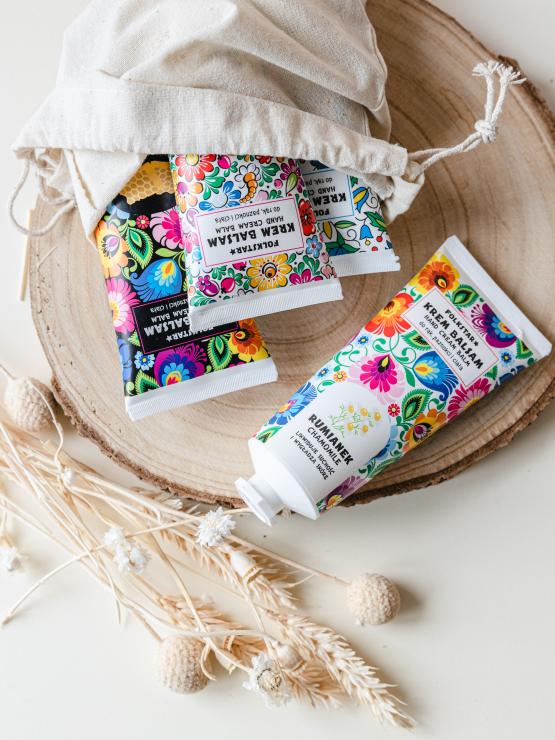 Zestaw zawiera: krem/ balsam do rąk kozie mleko - kaszubski, krem/balsam lawenda - opolski, krem/balsma do rąk propolis - łowicki czarny, krem/balsam do rąk rumianek - łowicki biały